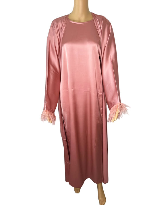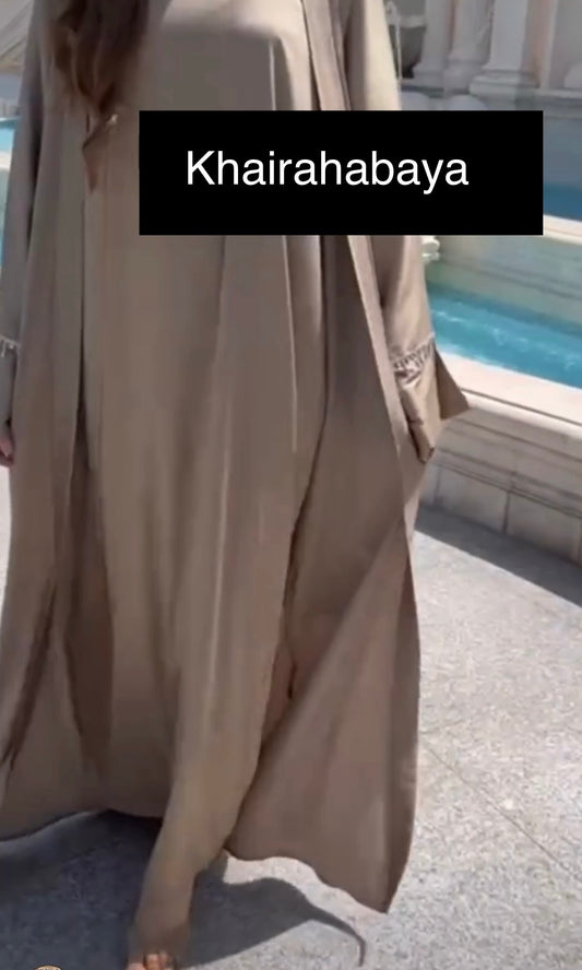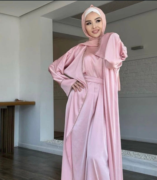 3 Piece Satin Cream cut hand Kaftan Style Abaya